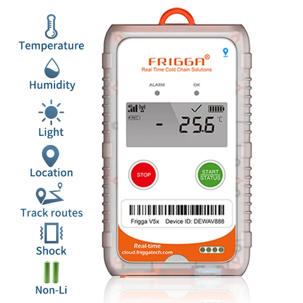 Full cold chain visibility(Location, Temperature, Humidity, Light, Shock, Route) via Frigga cloud